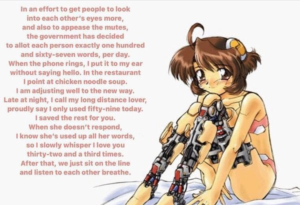 I want to confess to you many things, but I do not know where to start. The beginning is much too plain, and I do not have the patience to wait for momentum. The middle is confusing and to establish my story at end is to have wasted all of the experience on my self. Is it okay if we only sit here?